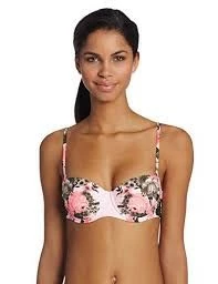 Seafolly Bella Rose Bustier Underwire Cup Bikini Top in Sugar. Stunning Sugar Rose Color Molded cup underwire top with at bust with removable and Adjustable straps, Clasp closure on the back.