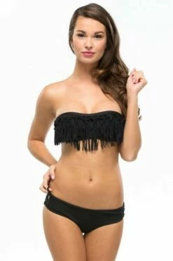 L*Space Dolly Knotted Bandeau Top in Black. Strapless Top Fringe Knot detailing , Ties at the back