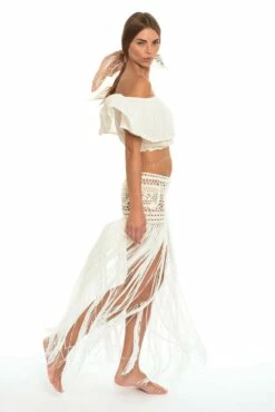 PilyQ Lexi Crochet Beach Shorts in Coral Ombre. Drawstring Lacey Shorts that tie at the waist