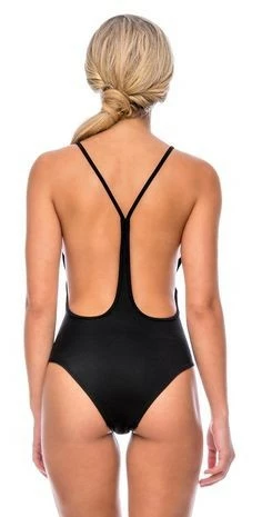 Plunging one piece with removable, soft padding and Double-lined Razor back detailing.. Available in Latin / Brazilian back coverage