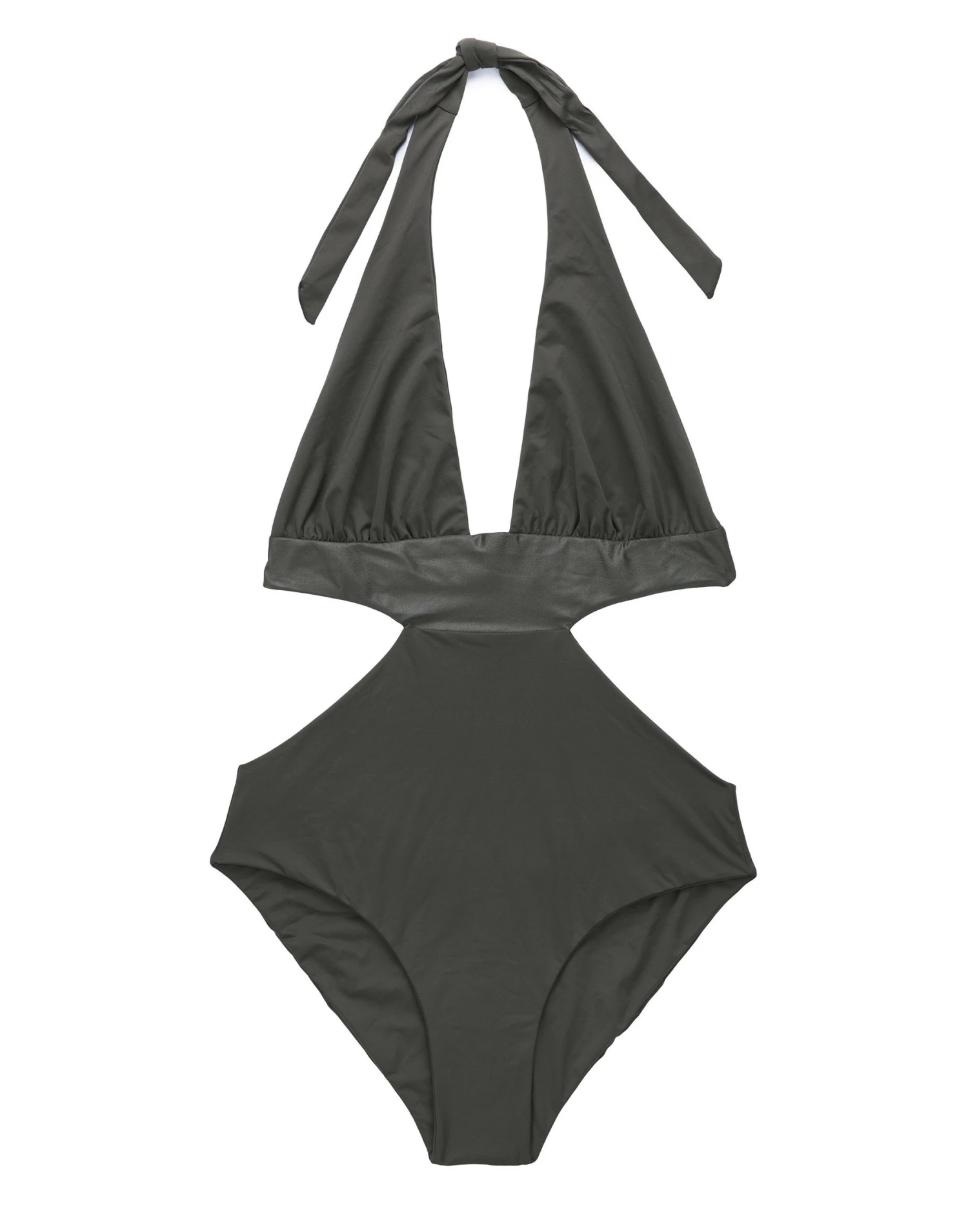 Beach Bunny Swimwear Nina One Piece Monokini in Hunter Green. One of our best selling one-pieces features halter top for support.
