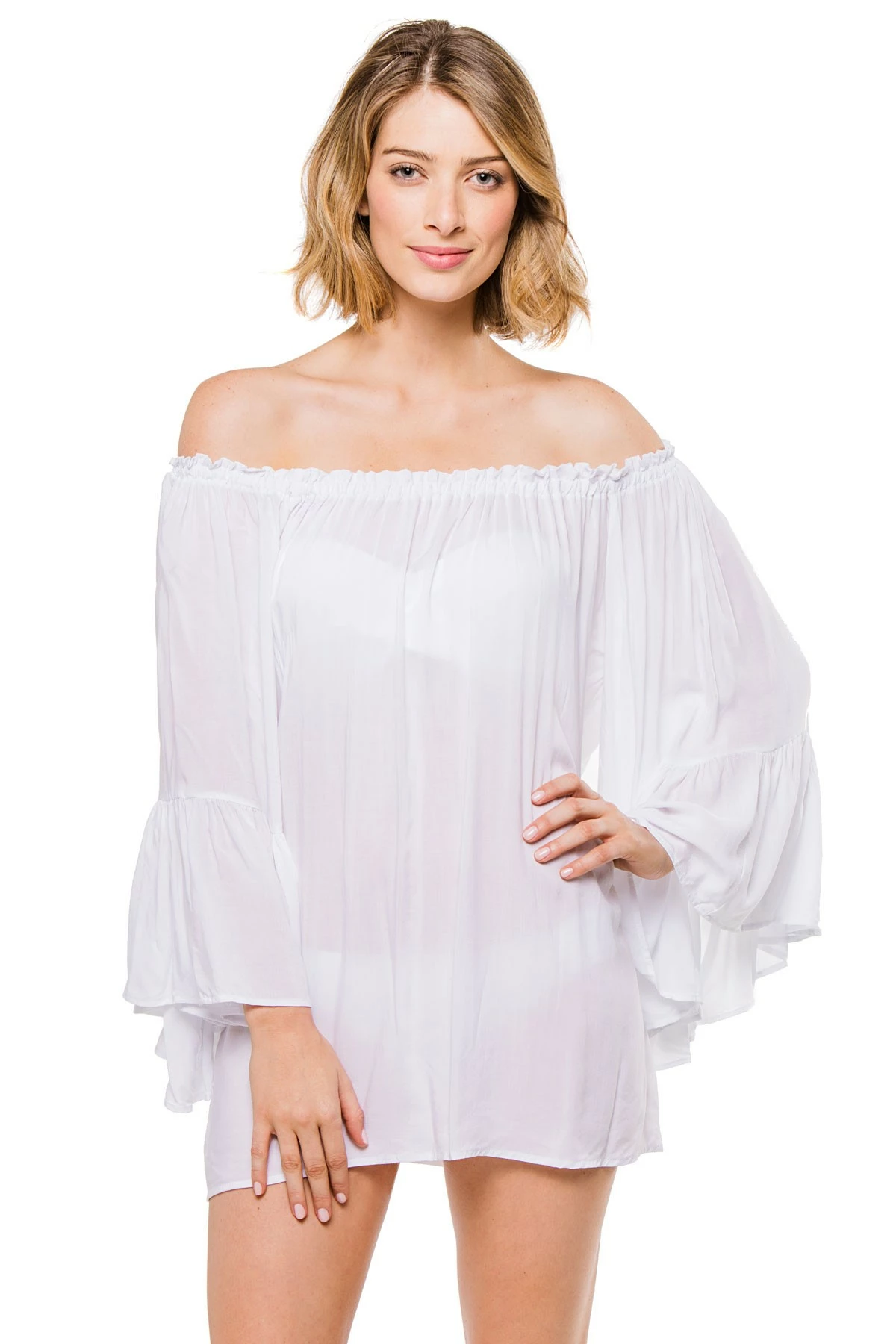 Elan Beachwear Off The Shoulder Long Sleeve Top in White