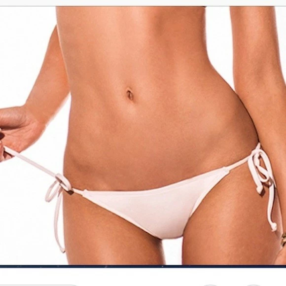 L*Space Ooh La La Bikini Bottom in Shell. Adjustable tie side bottom. Providing Moderate Coverage bottom Shirring Detail at the rear.