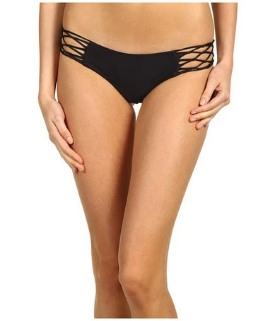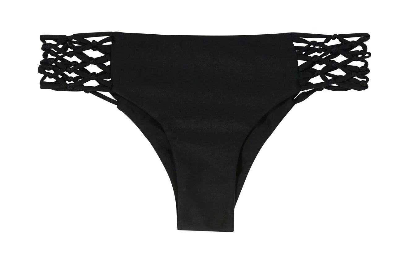 Mikoh Swimwear Rockies Bikini Bottom in Night . Rockies bottom features crochet like detailing at the sides. Provides brazilian back coverage.