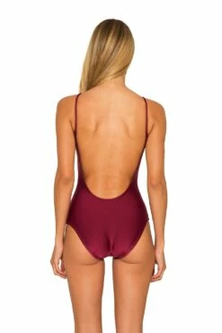 Luli Fama Swimwear Safari Dreams High Leg Ruched Back One Piece in Brown Plunging one piece that ties at the center of the waist. Straps ties at the neck. Ruching detailing at the rear. Brazilian Coverage