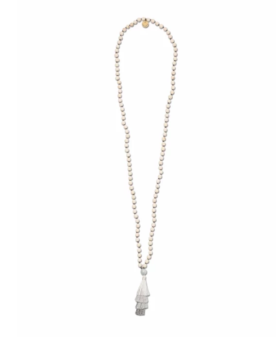 Senza Necklace in Gray by Cocobelle. Ombre tassel necklaces, Limestone beads featuring a semi-precious stone and tired tassel pendant.