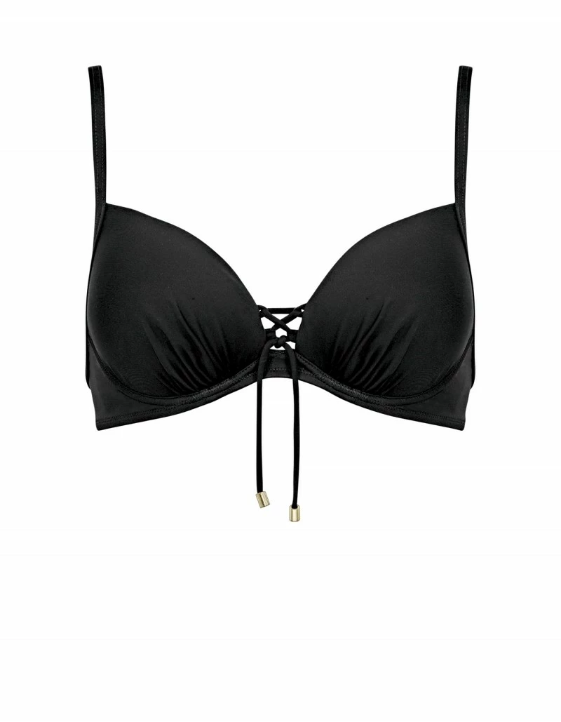 Watercult Summer Solid Push Up Bikini Top, top features underwire for shape and support. Adjustable shoulder straps come with the option to be worn straight or halter style. Clasp closure at the back.