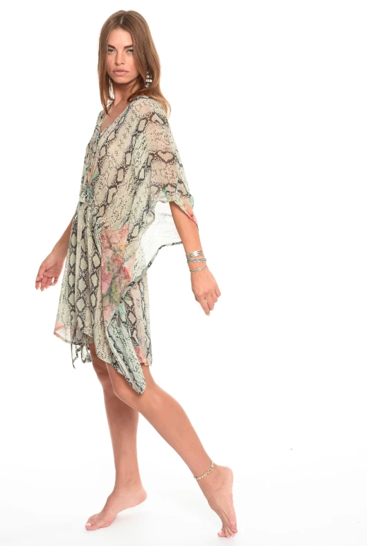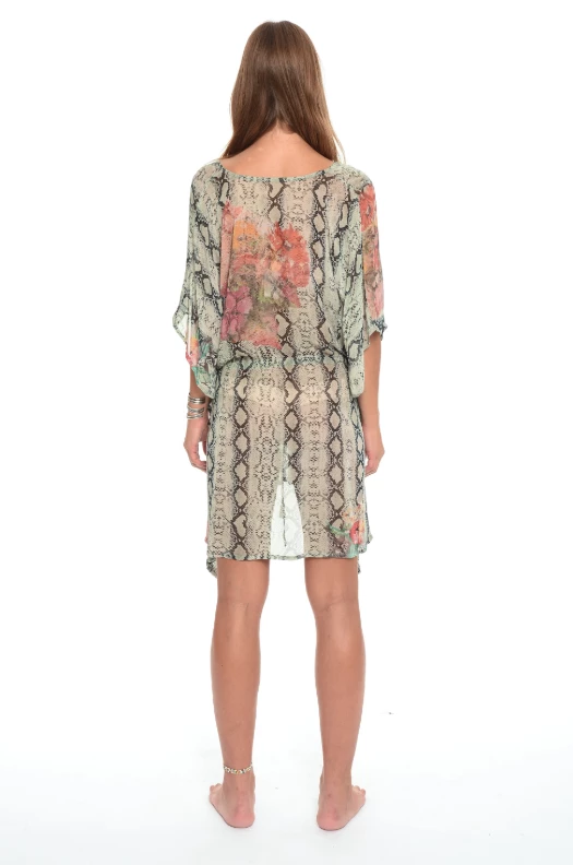 Muche et Muchette Tahiti Cover-Up with Front Drawstring in Snake. A loose unique option for this summers events, dressed up or down its a soft statement that remains eclectic. Pair it with shorts, jeans, or wear it over your bathing suits as a cover-up. You will look and feel good.